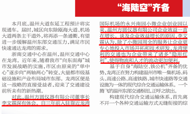 日前,溫州日報記者采訪了溫州方圓儀器有限公司董事長李文霖先生。對公司入駐靠近龍灣國際機場的永興南園以來取得的快速發(fā)展給予了充分肯定,稱贊了公司效益的巨大提升。談及企業(yè)效益增長的原因,李文霖認(rèn)為,除了小微園帶來周全的服務(wù)讓企業(yè)更專心地投入市場開拓和技術(shù)研發(fā),龍灣便利的交通也為企業(yè)帶來了諸多隱形紅利,使得物流和人才的流動更加便利。愿溫州方圓儀器有限公司更上一層樓。